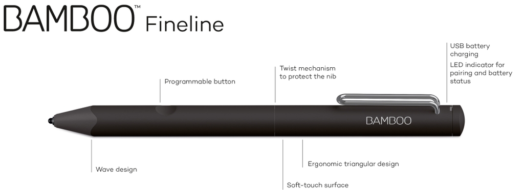 Bút cảm ứng Wacom Bamboo Fineline 3 được thiết kế sử dụng trên hệ điều hành iOS. Đây là chiếc Stylus sử dụng pin sạc và có cả tính năng cảm ứng lực nhấn 1024. Trong việc ghi chép có thể tính năng cảm ứng lực nhấn sẽ không phát huy được sự tiện ích mà chúng mang lại nhưng nếu bạn có kết hợp dùng để vẽ đồ họa thì đây sẽ là sự lựa chọn tuyệt vời.
