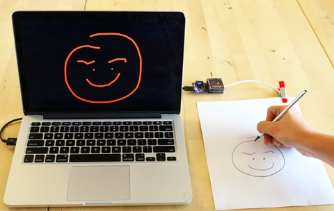 Được biết, loại giấy đặc biệt này được phủ một lớp phim dẫn điện và sơn có chứa carbon. Giấy cảm ứng sẽ được kết nối với chiếc Macbook thông qua cổng USB và truyền mọi thứ được vẽ trên bề mặt giấy sang màn hình máy tính. Ngoài nhận diện được các nét bút, chúng còn có thể nhận diện cả ngón tay của bạn.
